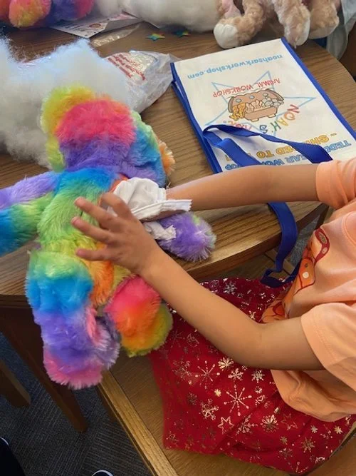 The Friends of Orcutt Library hosted a do-it-yourself teddy bear workshop for our local preschoolers as a fundraiser for the Orcutt Branch Library. The children unleashed their creativity by handcrafting their own furry friend right here at the library. Similar to the concept of Build-a-Bear, each bear was given to the children unstuffed. Children were able to choose between 2 stuffies - a colorful rainbow bear and a cute labradoodle puppy. They were provided a stuffing kit, which included a stuffing packet, a special wish star to insert into the bear, a birth certificate, and a buddy bag.
